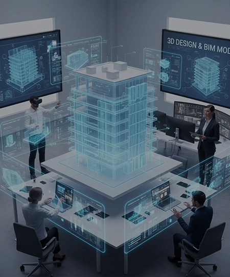 - 3D Design and Building Information Modeling (BIM) are advanced digital tools used in modern construction and façade engineering to visualize, design, and coordinate every element of a building before actual construction begins.